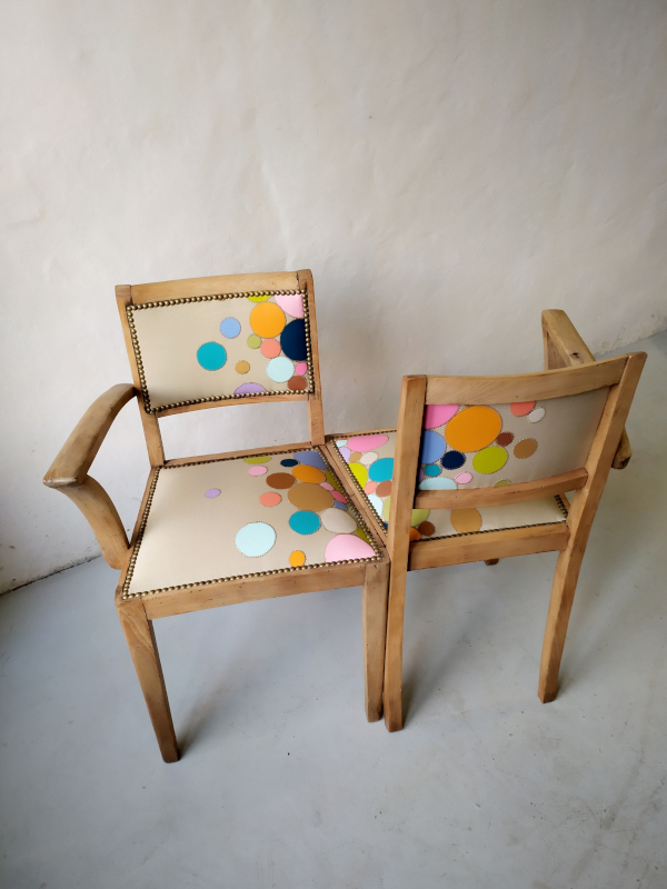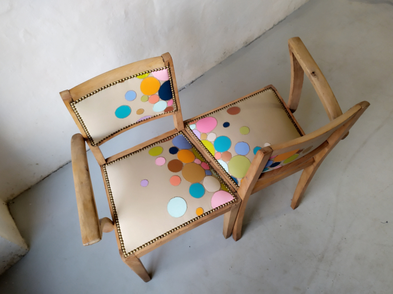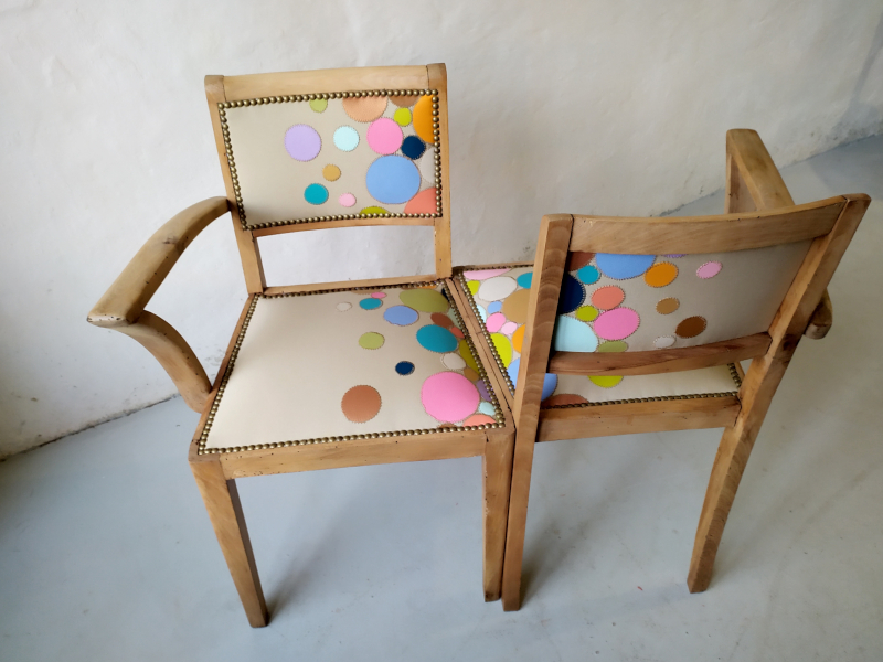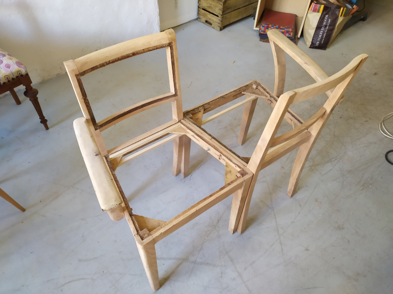 Assemblage de deux fauteuils bridge pour réaliser un confident.