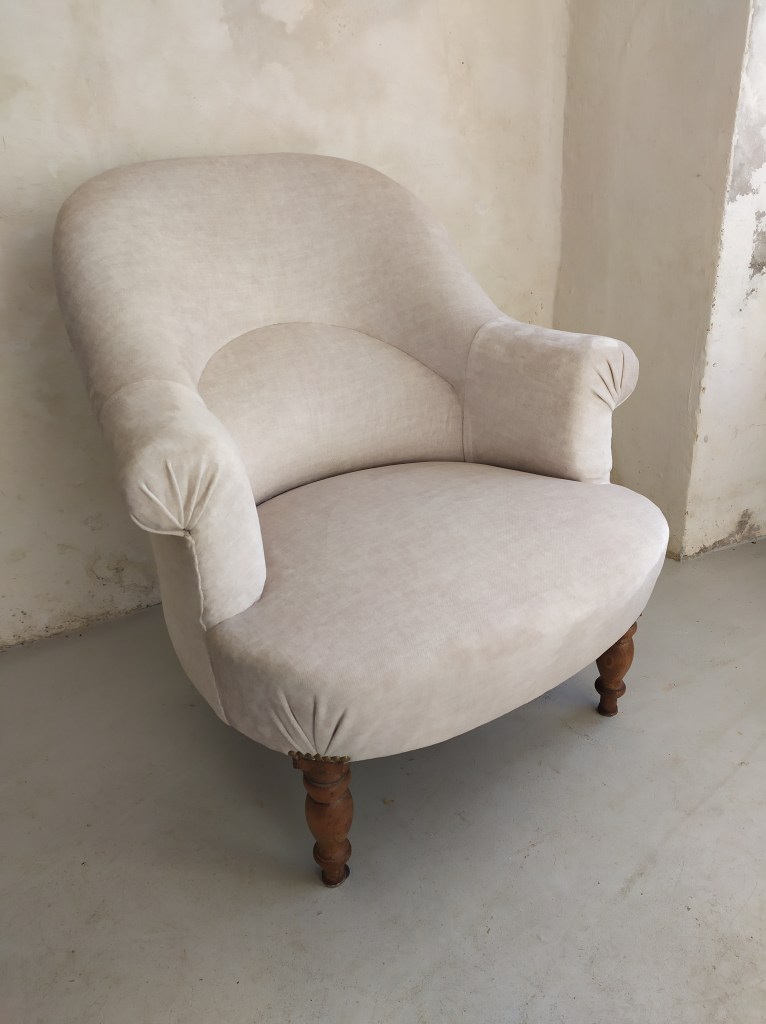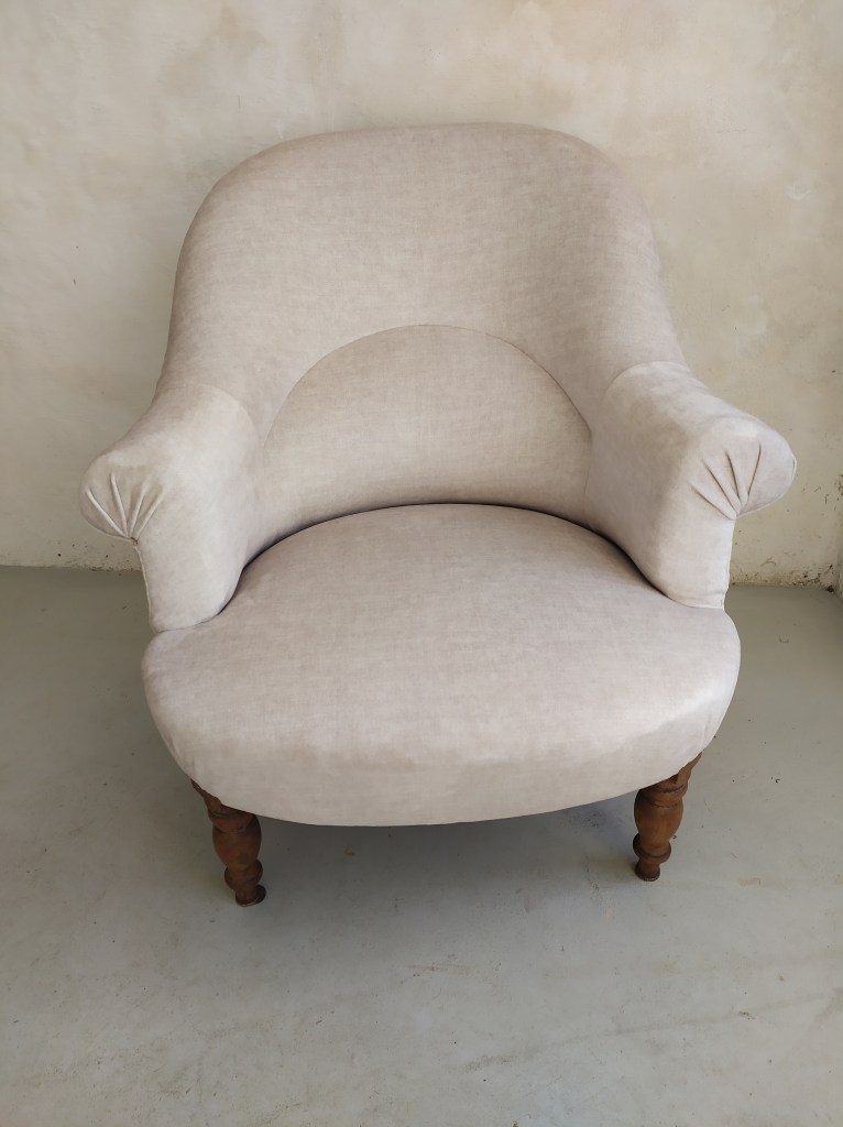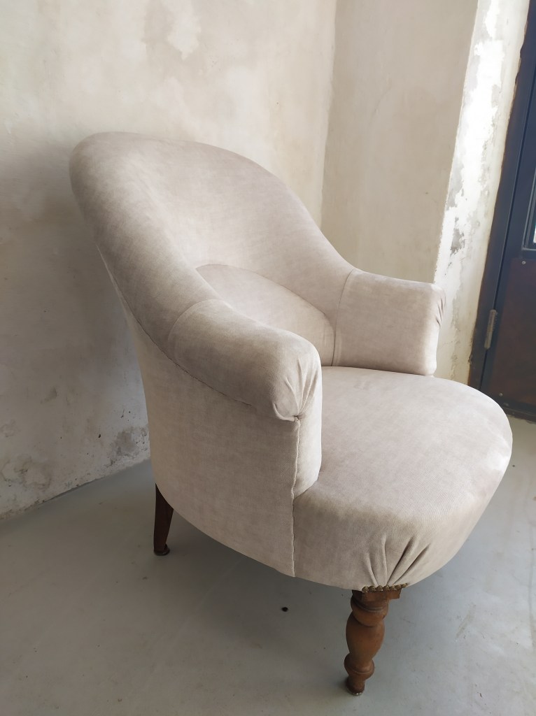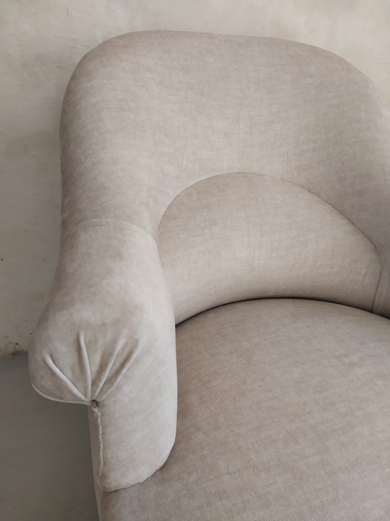 Fauteuil Crapaud Meubles tissu "classique" Fauteuil crapaud recouvert d’un tissu écru finition clou décoratif bronze doré