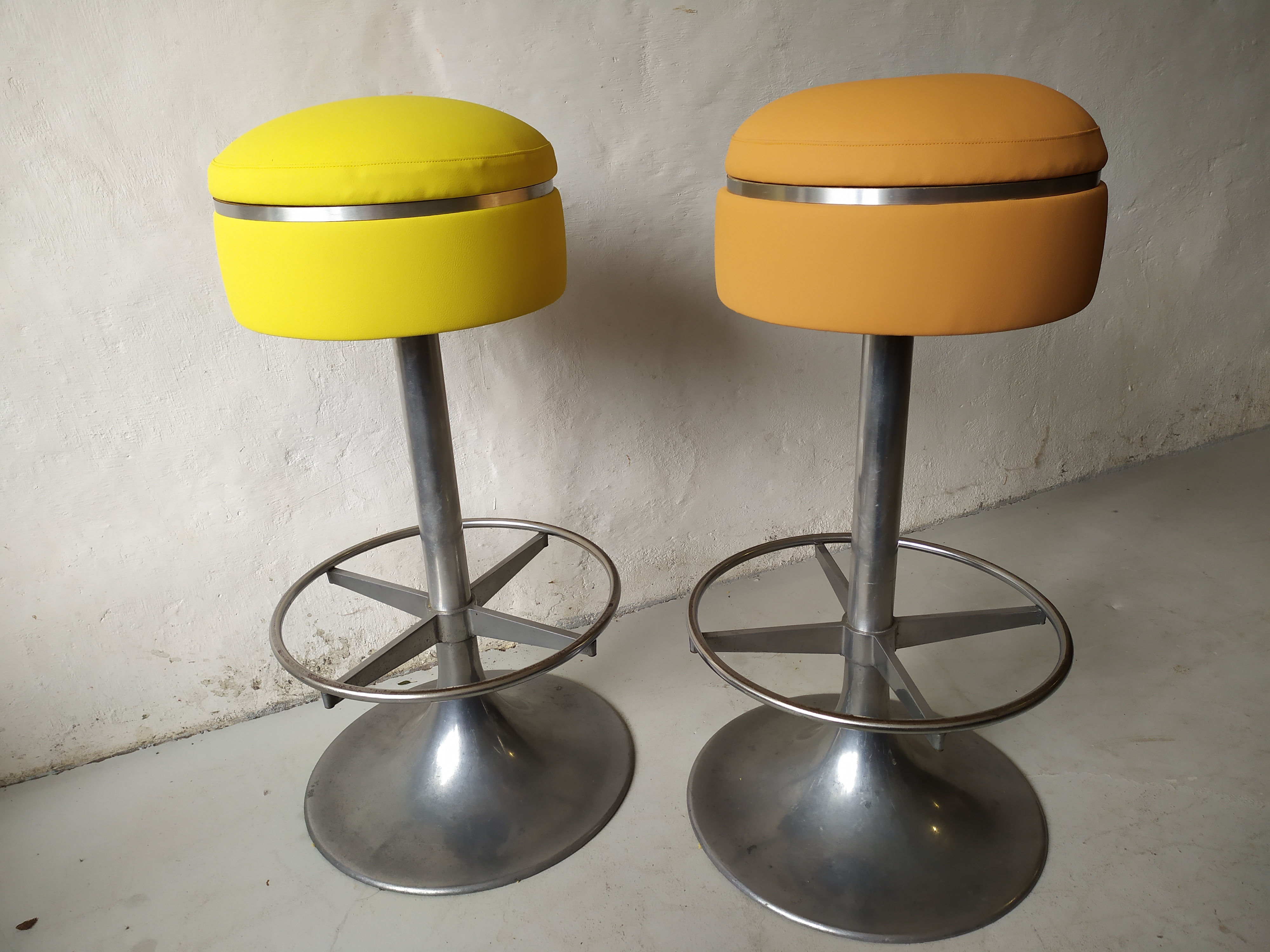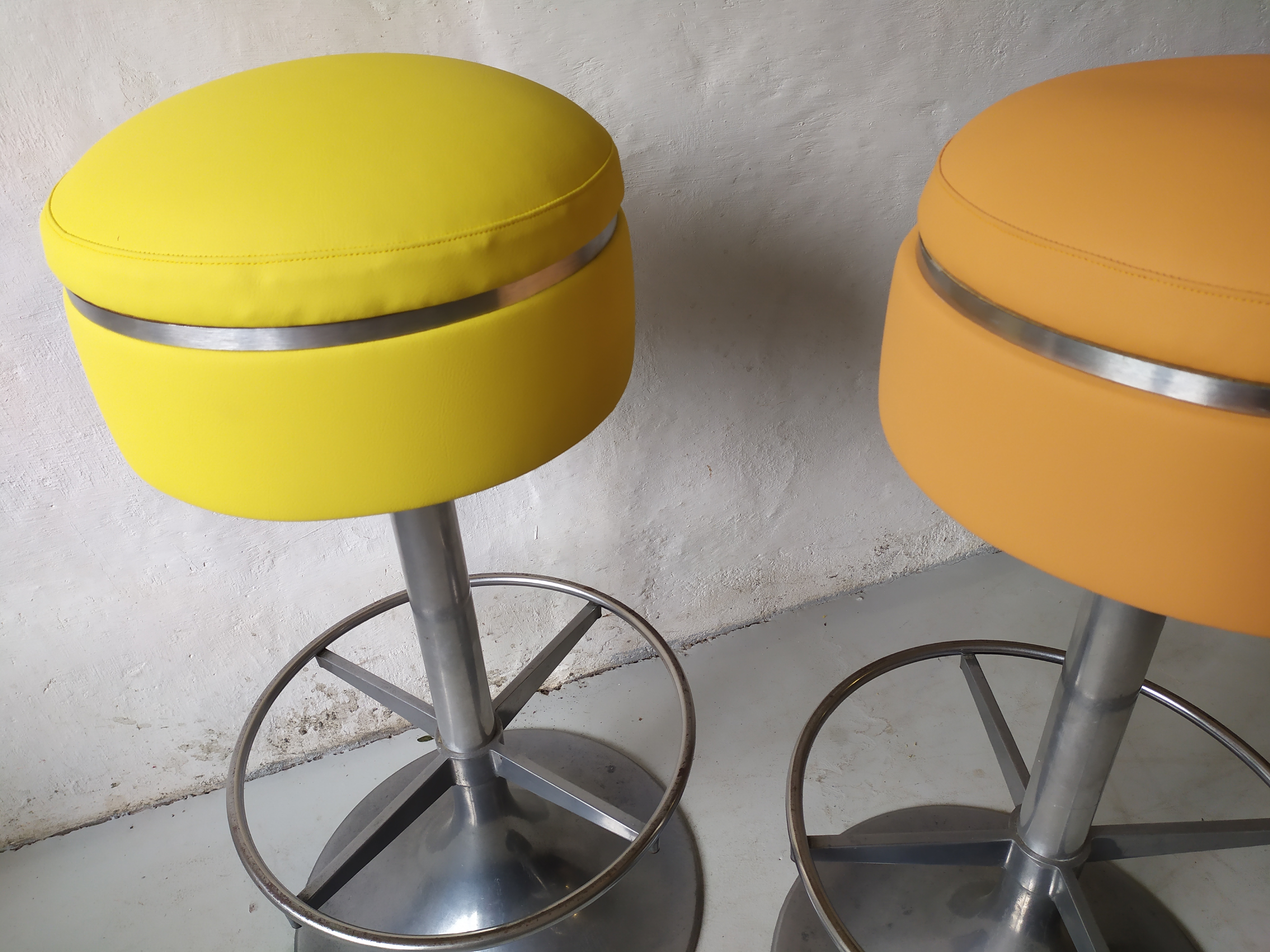 Tabourets haut Meubles tissu "classique" Tabourets haut tournant restaurés avec un similicuir jaune et orange